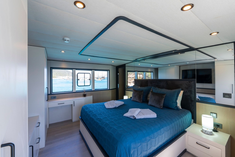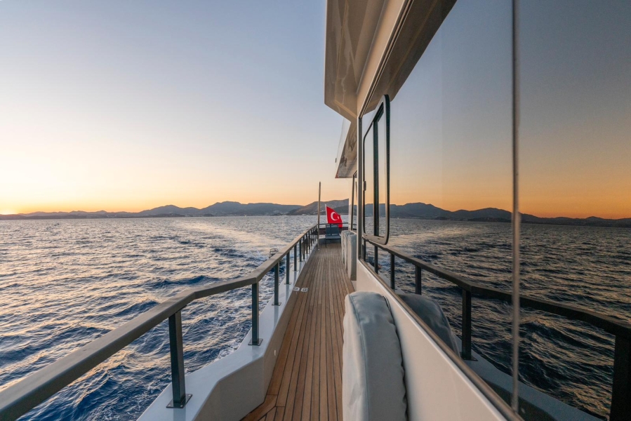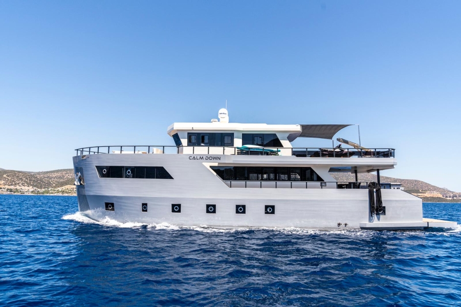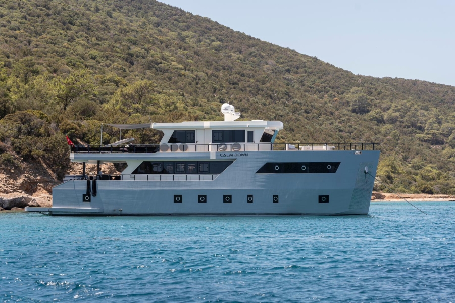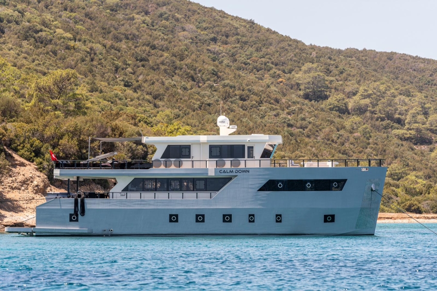Charter the 30-meter Calm Down, a modern trawler-style motor yacht built in 2023, and experience a luxury yachting holiday along the Turkish Riviera. With departure options from Bodrum, Göcek, Fethiye, or Marmaris, Calm Down is perfect for exploring the stunning bays of the Aegean and Mediterranean coasts—and even the Greek Islands on request.