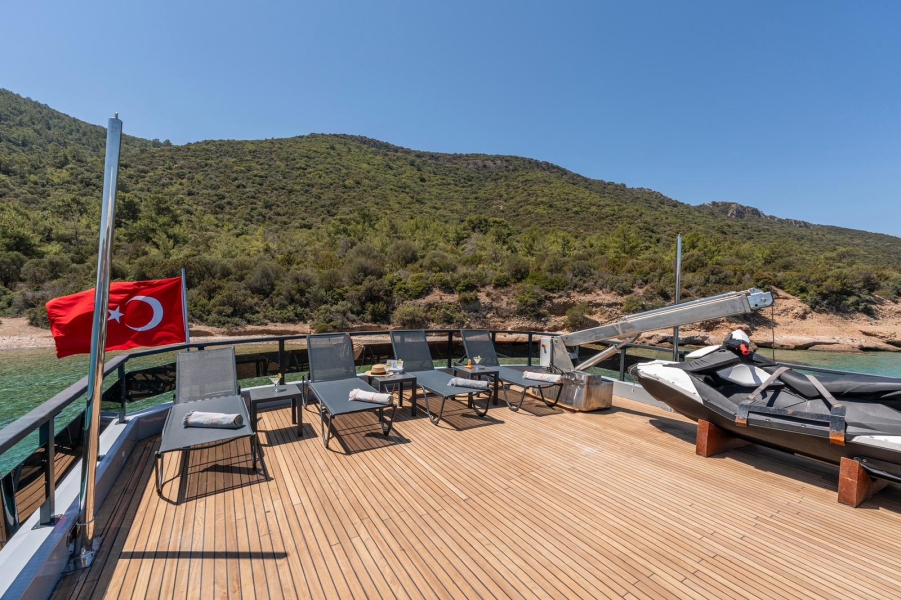Calm Down is available for weekly yacht charters departing from Bodrum, Fethiye, Göcek, or Marmaris. It can also cruise to the Greek Islands upon request.