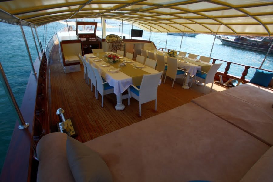Fully Equipped and Comfortable: Featuring a fully equipped kitchen, classic furnished lounge with bar, air conditioning, satellite TV, and modern navigation systems, the gulet ensures your comfort at sea.