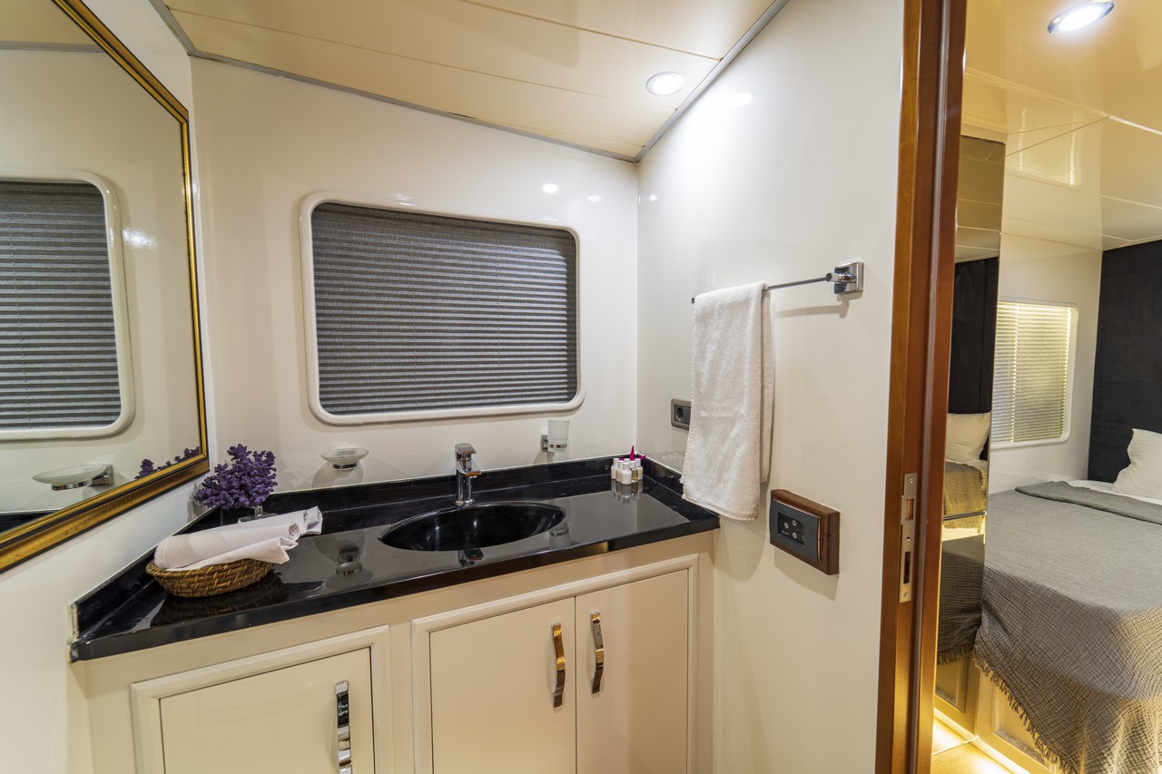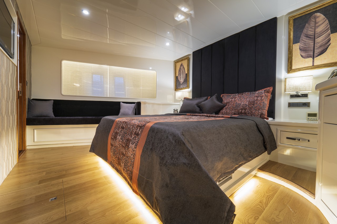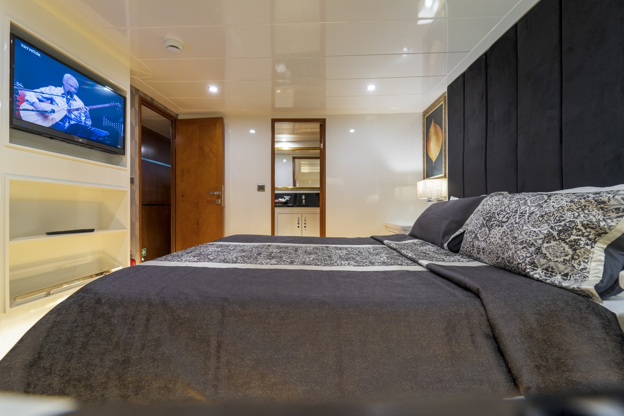 - Master Cabin: King-size bed, en-suite bathroom, panoramic windows