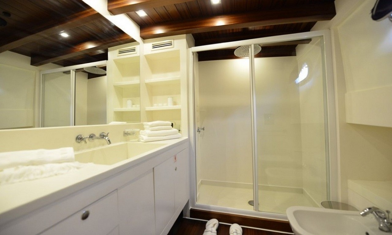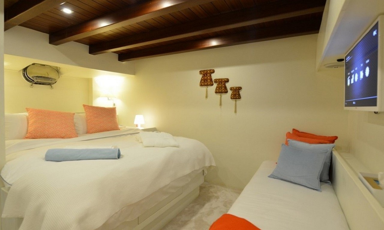 The yacht offers five beautifully designed cabins, each providing privacy and comfort: